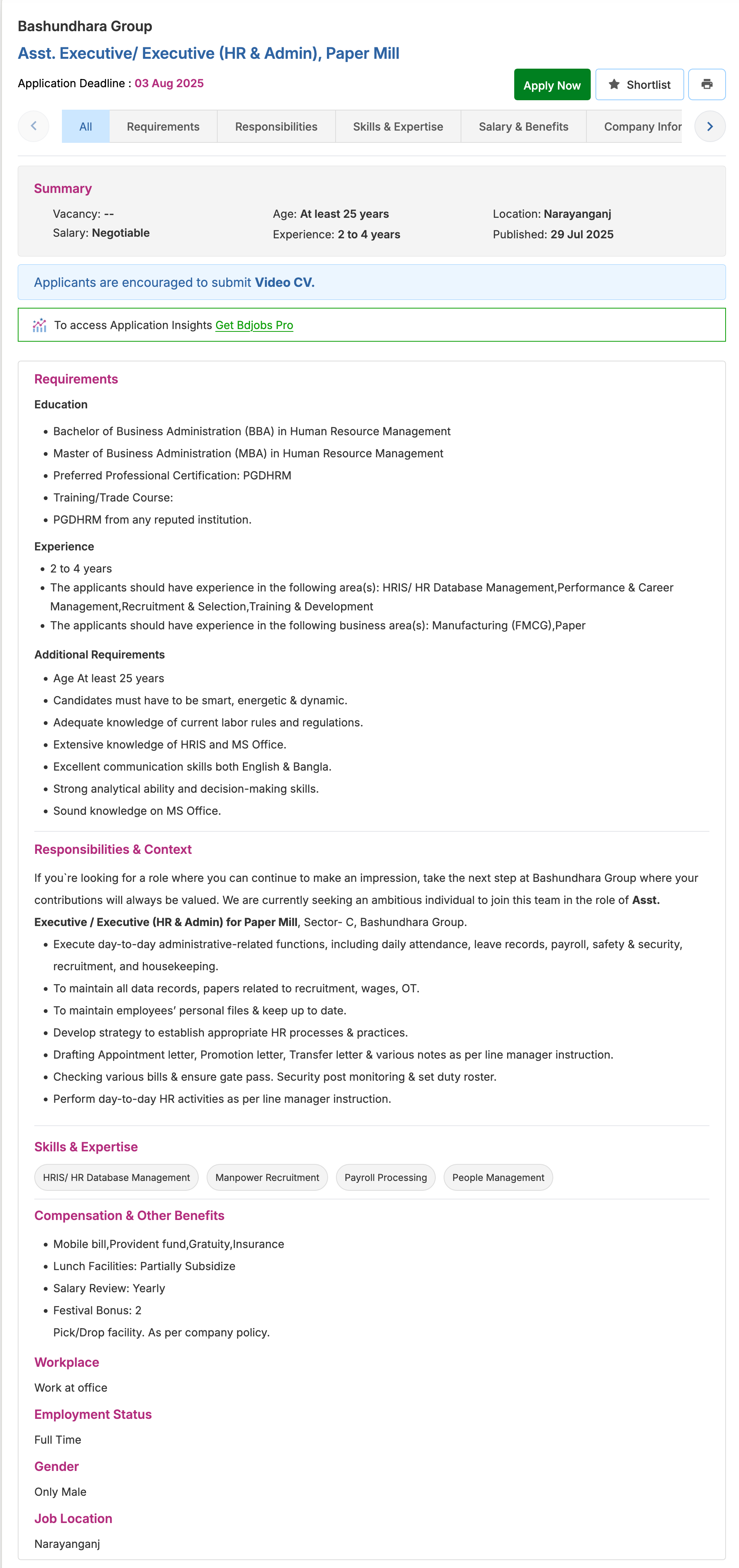 Bashundhara Multi Paper Industries Ltd. Job Circular 2025
