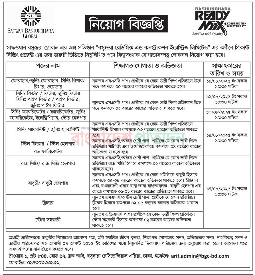বসুন্ধরা গ্রুপ সকল চাকরির খবর 2025
