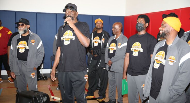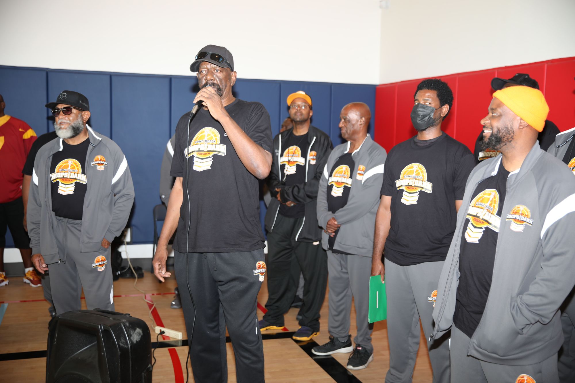 Group picture reveals Hoop After Darkish coaches and gamers from final 12 months taking part in on the Salvation Military’s Purple Defend fitness center. (Picture courtesy of Leonard Adams)